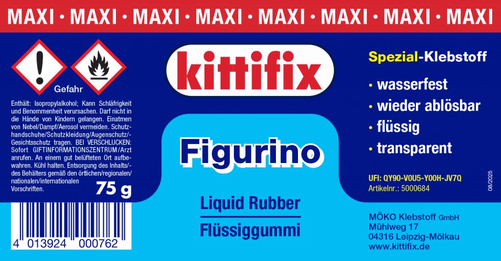Figurino ist wasserfest, transparent, wieder ablösbar. Einseitig aufgetragen eignet er sich zum vorübergehenden Haften. Zweiseitig (doppelseitig) aufgetragen eignet er sich zum festen Halt